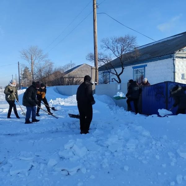 За считанные минуты дружная команда расчистила дорожку, ведущую к дому пожилой женщины.