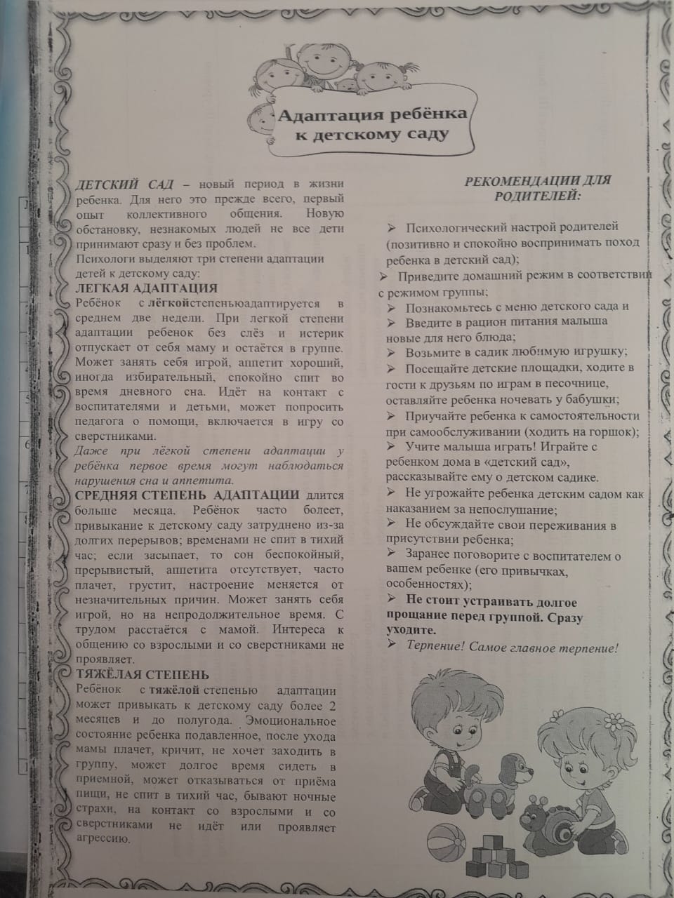 Консультация для родителей «Адаптация ребенка к детскому саду»