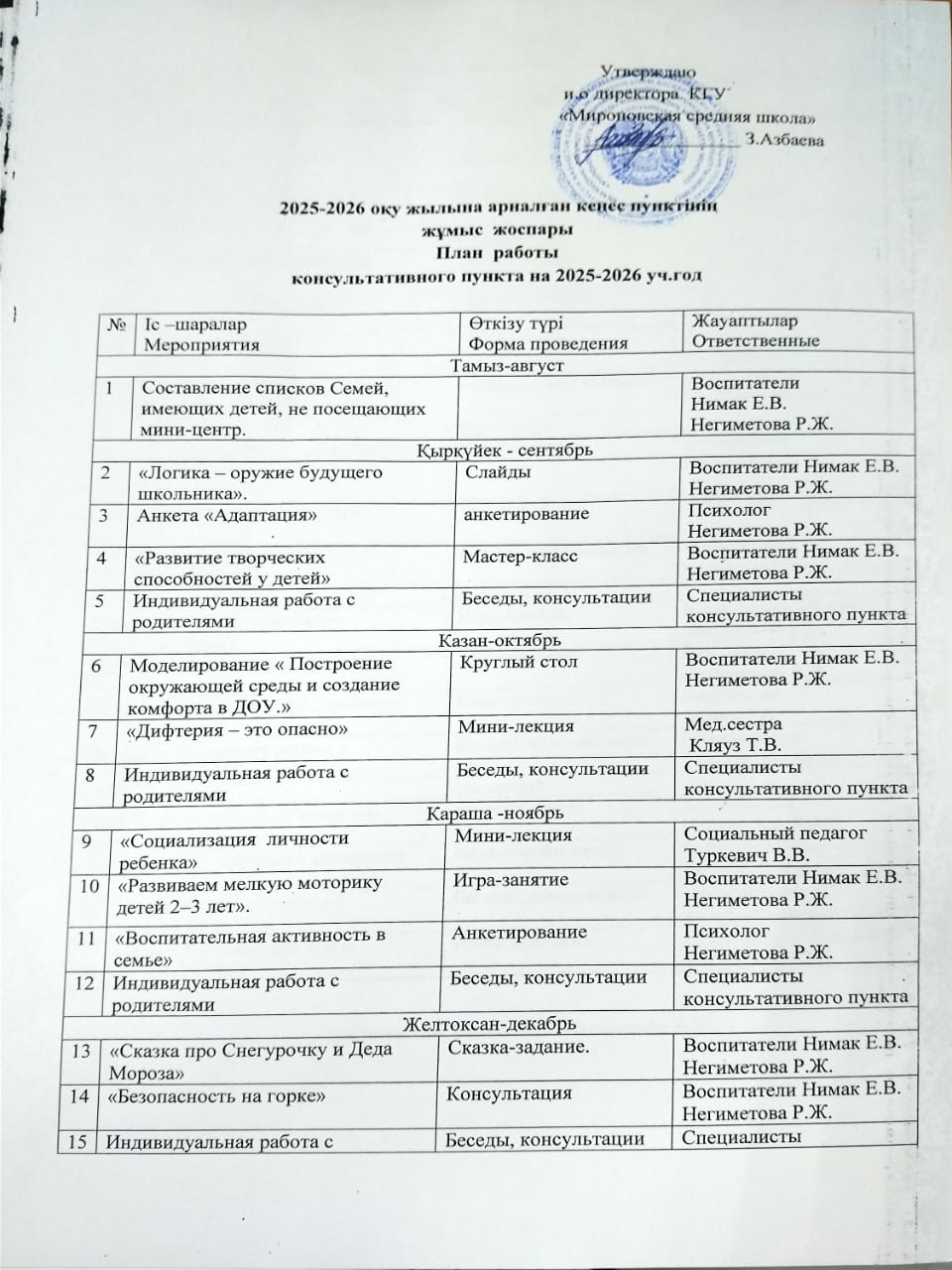 Консультационный пункт — КГУ «Отдел образования Тайыншинского района» КГУ «Мироновская средняя школа»