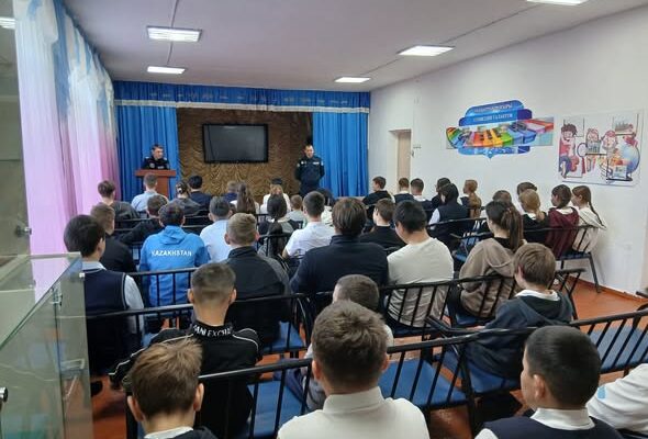 #Адал_азамат 21.10.2025г. в нашей школе прошла встреча учащихся 7–11 классов с сотрудниками полиции. Цель мероприятия — профилактика правонарушений среди
